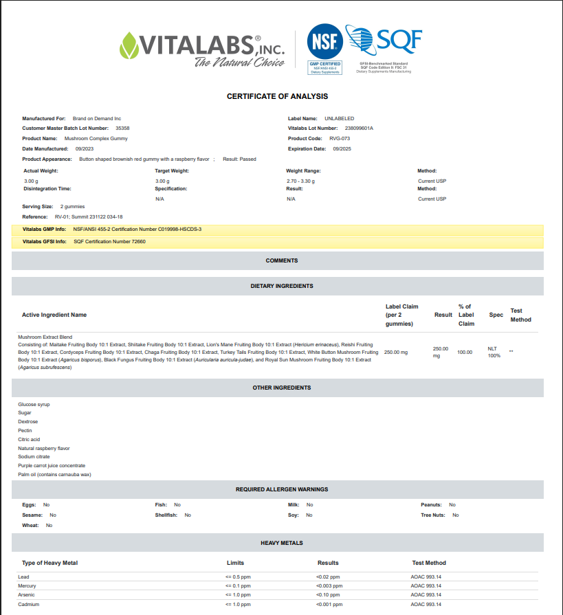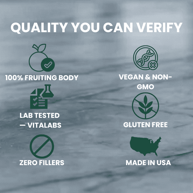We use carefully selected mushroom extracts from reputable suppliers that meet strict quality standards. Every batch is tested before release.