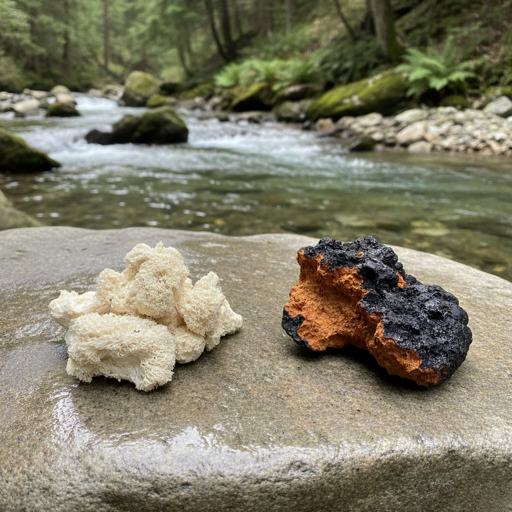 Enter The Lab We went back to the roots. We studied what our ancestors used for focus and stamina before the age of screens and sugar. We discovered the power of functional mushrooms—Lion's Mane for the brain, Cordyceps for energy.